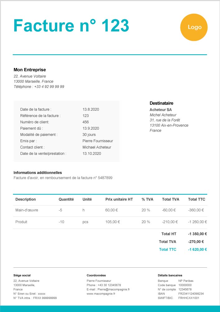 Comment faire une facture davoir modele conseils - independant.io